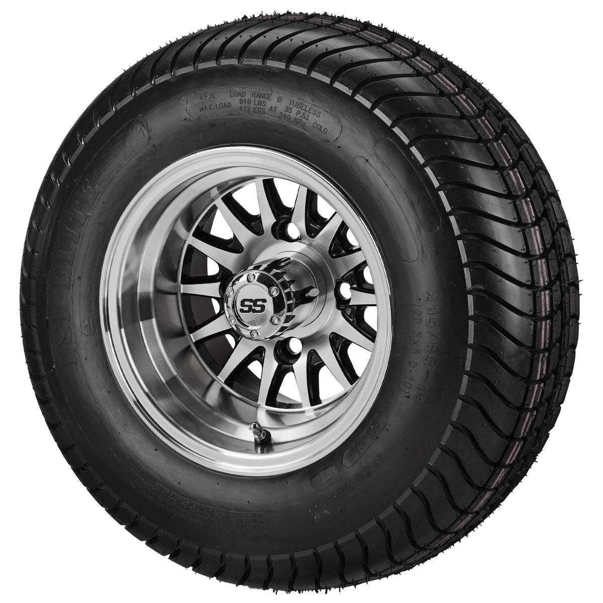 LSI 10" 14-Spoke Black & Machined Wheel and Low Profile Tire Combo