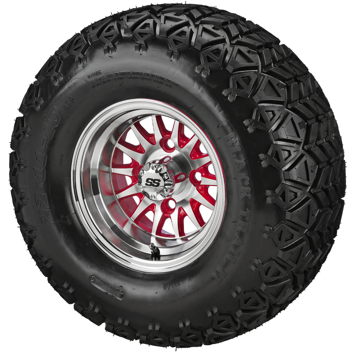 LSI 10" 14-Spoke Red & Machined Wheel and Lifted Tire Combo
