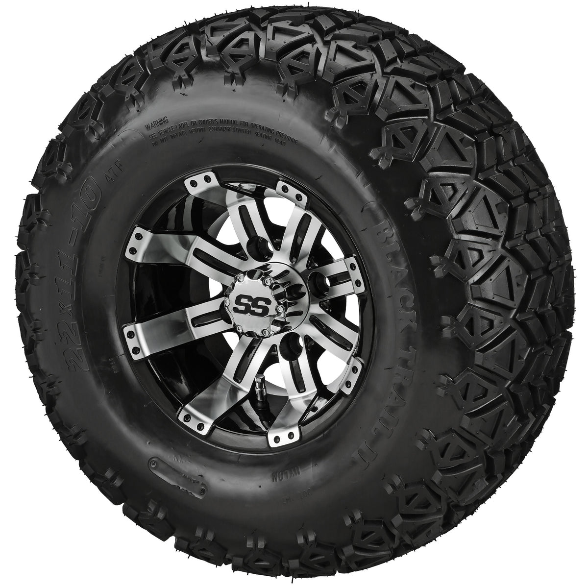 LSI 10" Casino Black & Machined Golf Cart Wheel and Lifted Tire Combo