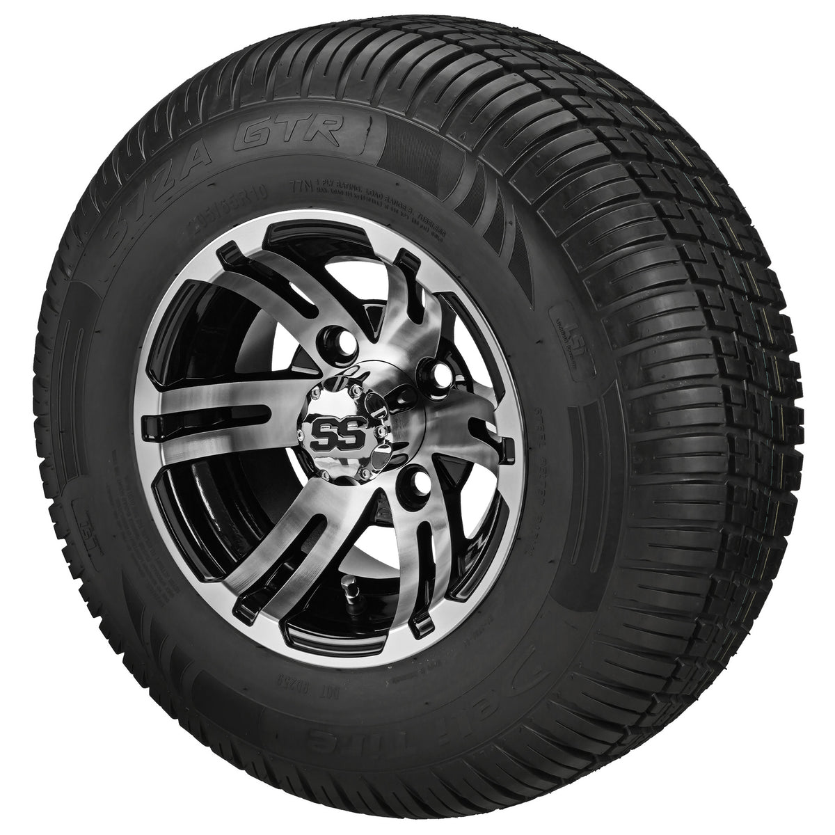Turn heads and tighten handling with the Epic 10” black & machined golf cart wheel paired with low-profile tires—a clean upgrade for pavement, paths, and neighborhood cruising. Mounted set. Fast install. Instant payoff in look and ride.