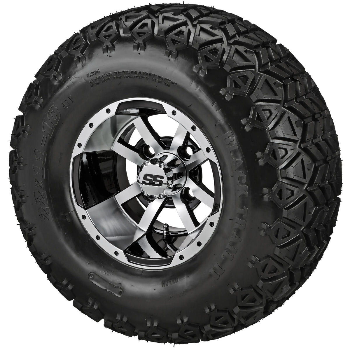 LSI 10" Maltese Cross Black & Machined Wheel and Lifted Tire Combo