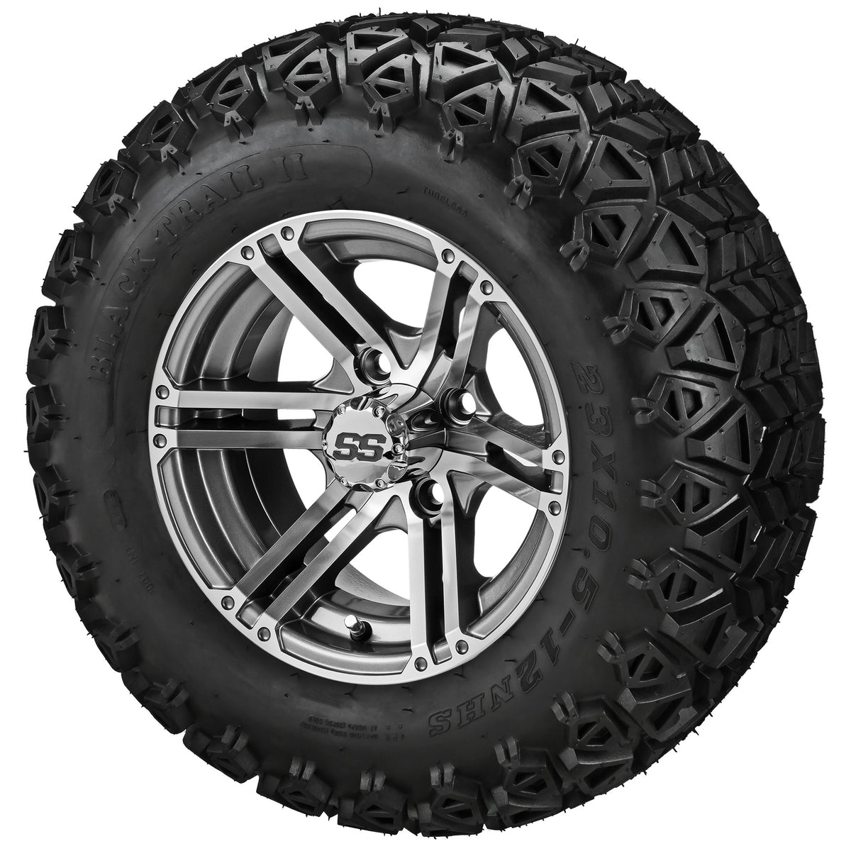 LSI 12" Yukon Gun Metal Gray & Machined Wheel and Lifted Tire Combo (Centered)