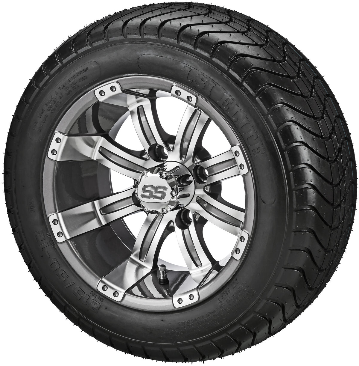 LSI 12" Casino Gun Metal Gray & Machined Wheel and Low Profile Tire Combo