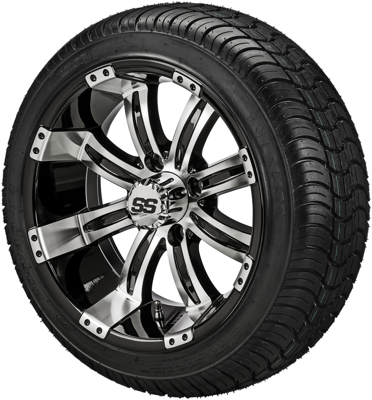 LSI 14" Casino Black & Machined Wheel and Low Profile Tire Combo