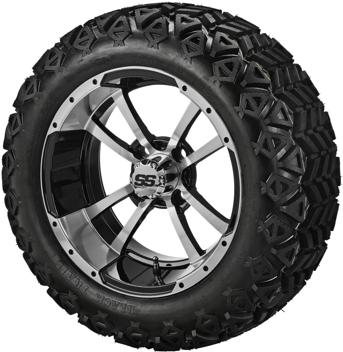 LSI 14" Maltese Cross Black & Machined Wheel and Lifted Tire Combo