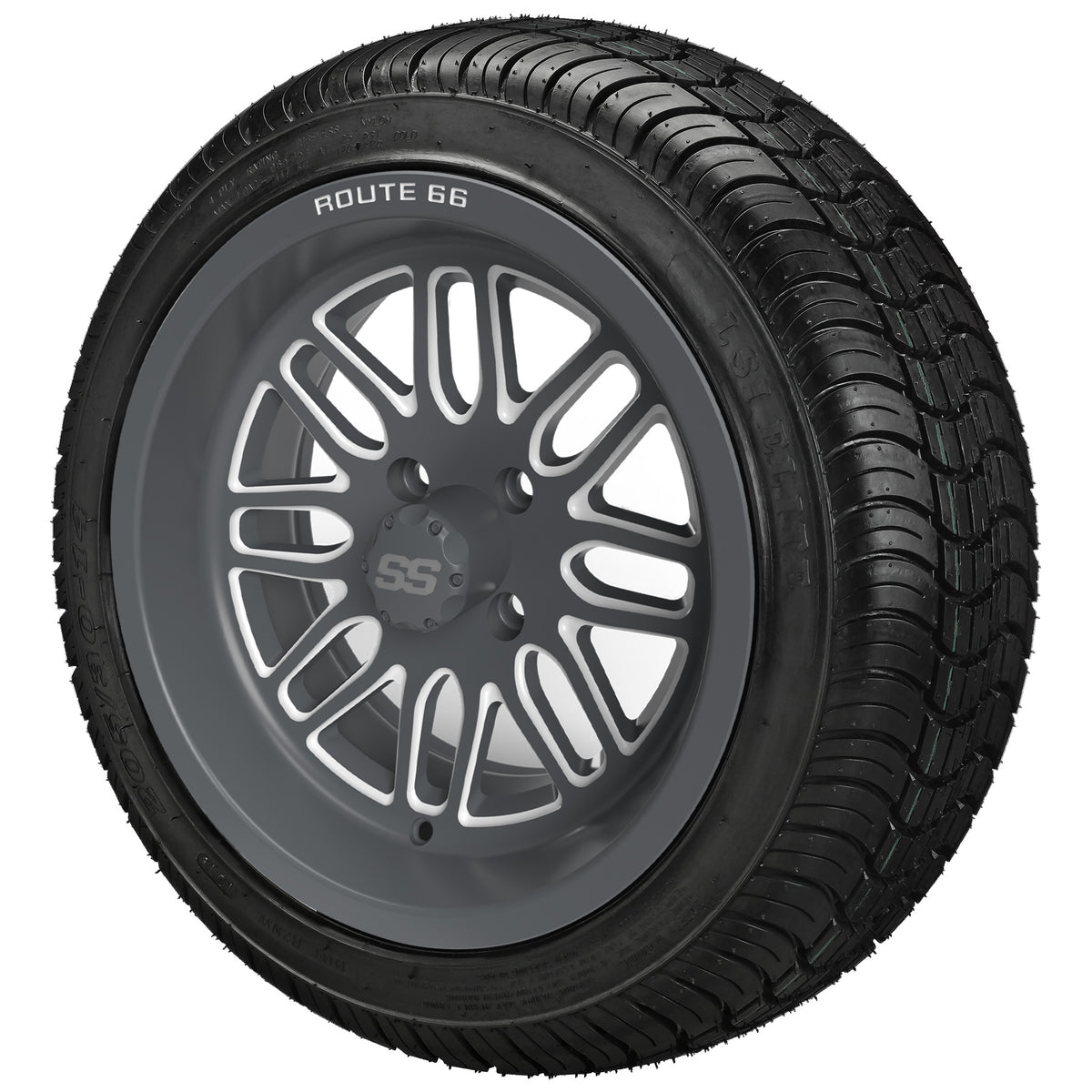 LSI 14" Sinister Gun Metal Gray & Machined Wheel and Low Profile Tire Combo